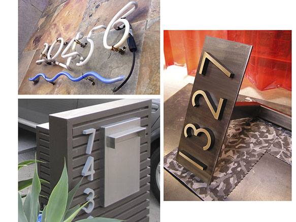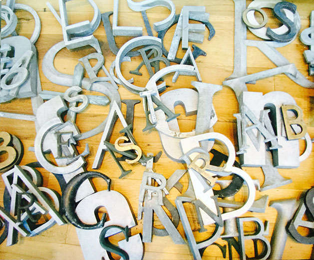 James' collection of original vintage fixtures from Los Angeles restaurants is shown in his studio office.