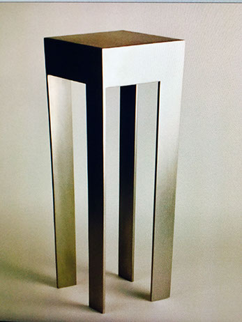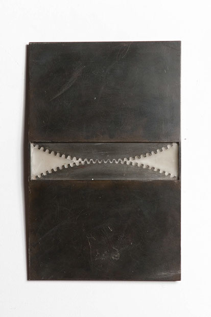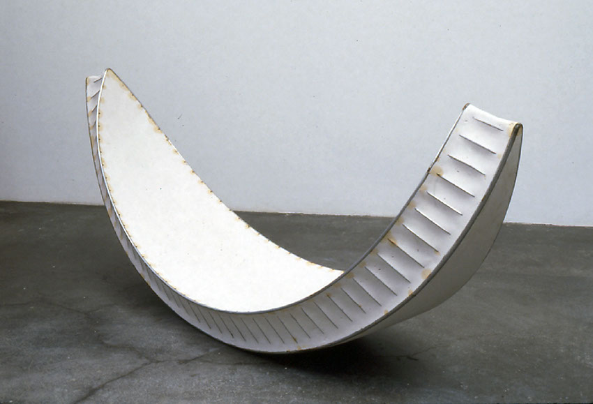 Solid white plaster is encased within the steel frame. Over time, the plaster edges against the steel will gradually acquire a light pigment of rust as would a vessel at sea.