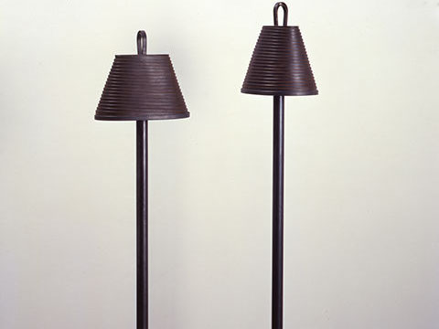 The Tree is composed of hand turned seamless steel bars. Over the years it has been decorated with small sculptures, toys, photos and lights.