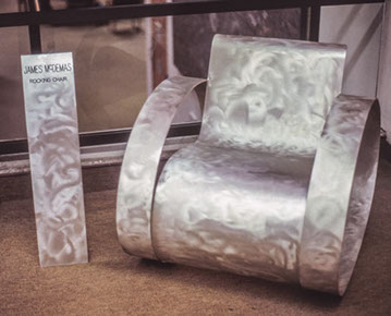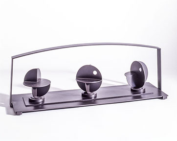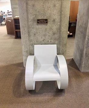 A steel maquette of the 3 Seat Sculpture at the Santa Monica Performing Arts Center, also owned by the college, was designed as wall art. it sits on a metal shelf with carrying handles measuring 10” x 20” x 8”. It is installed in the Santa Monica College Performing Arts Center.
