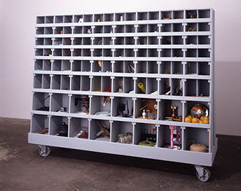 The Art Bin Project was a major creative effort. Taking two years to complete, each of the 112 cubbies depicted social, environmental and world issues of the moment. Segments were rearranged as a constantly evolving, interpretive art work.
